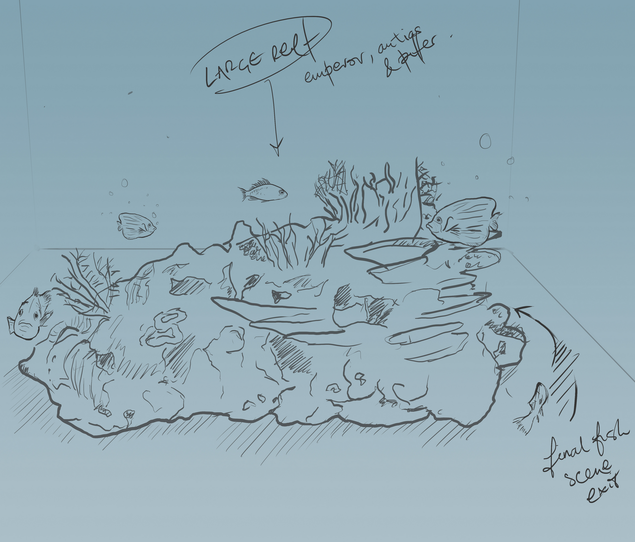 The 3D team set to work, creating all the 3D assets required for the build (sea life, corals).